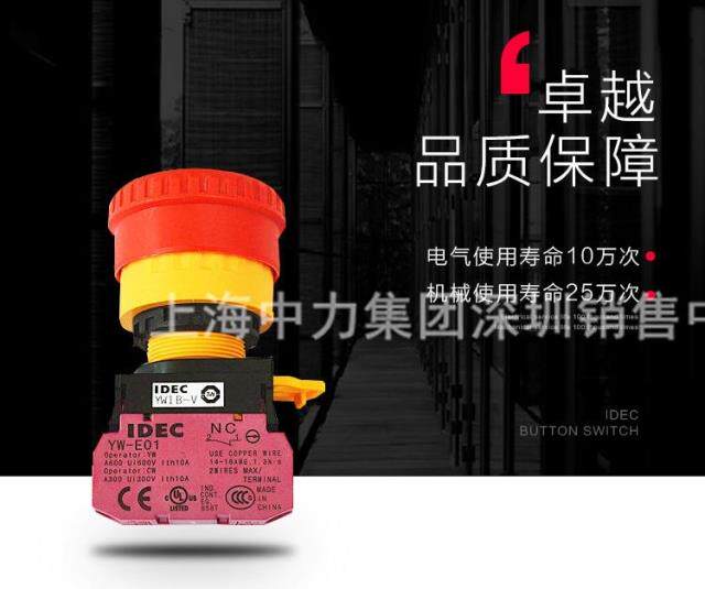 New original dress IDEC and Quan 22mm emergency stop button switch YW1B-V4E01R emergency stop button 1 often closed