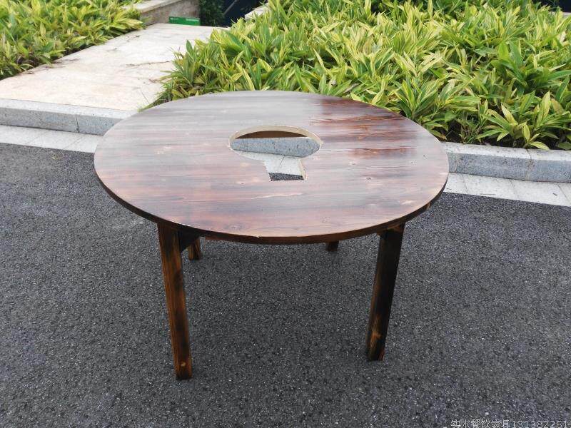 Solid wood carbonization fire size round table hot pot table and chair combination restaurant leisure farm fast food night snack food stall round table