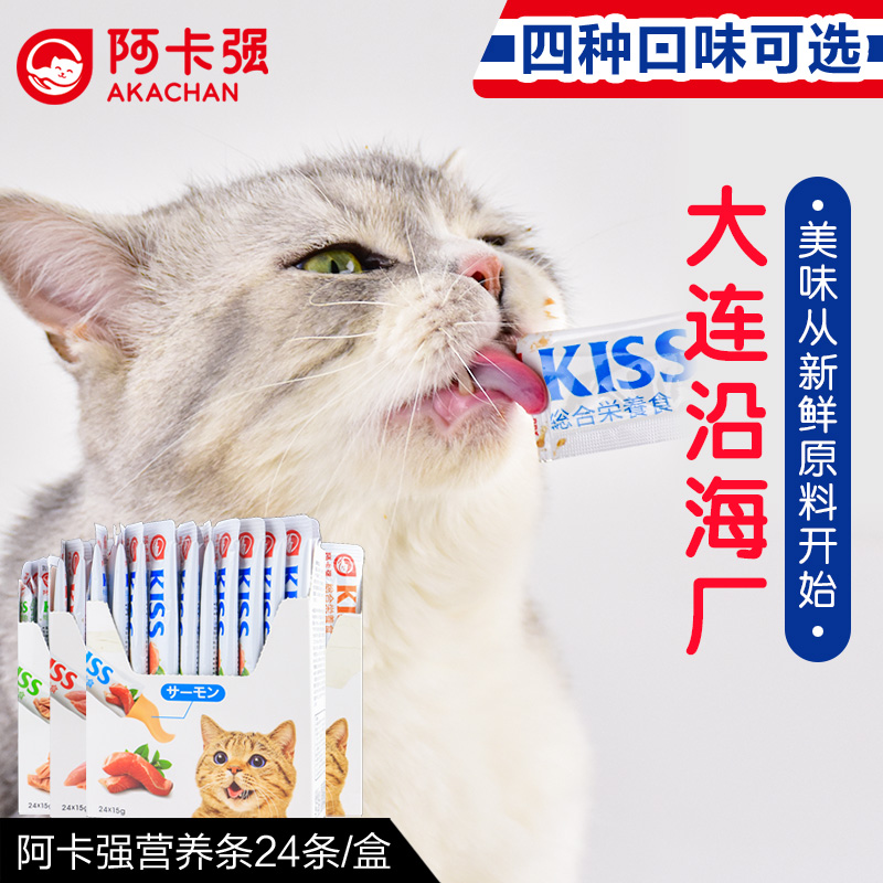 Aqaqiang Comprehensive Nutritional Cat Strips Fluty Cat Snacks Nutritional Paste Fresh pack 24 strips * 4 boxes of young cat canned wet grain