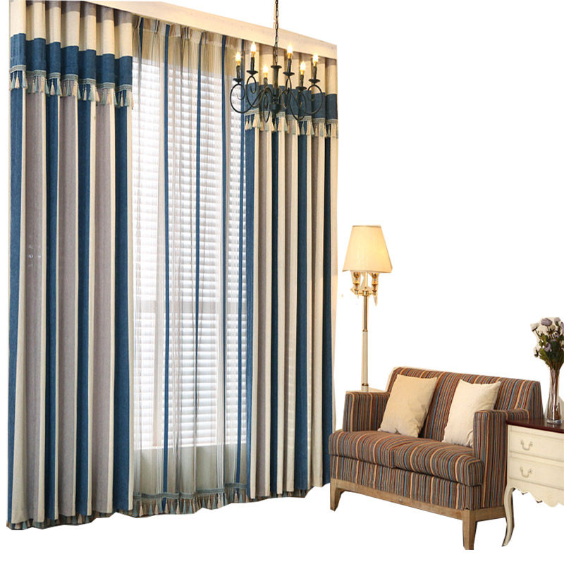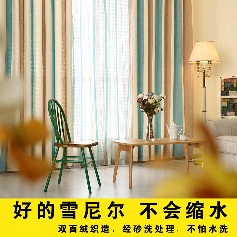 Custom thickened chenille Mediterranean curtains upscale living room floor-to-ceiling windows bedroom floating windows vertical stripes simple and modern