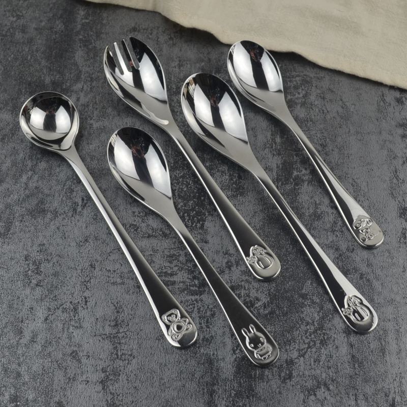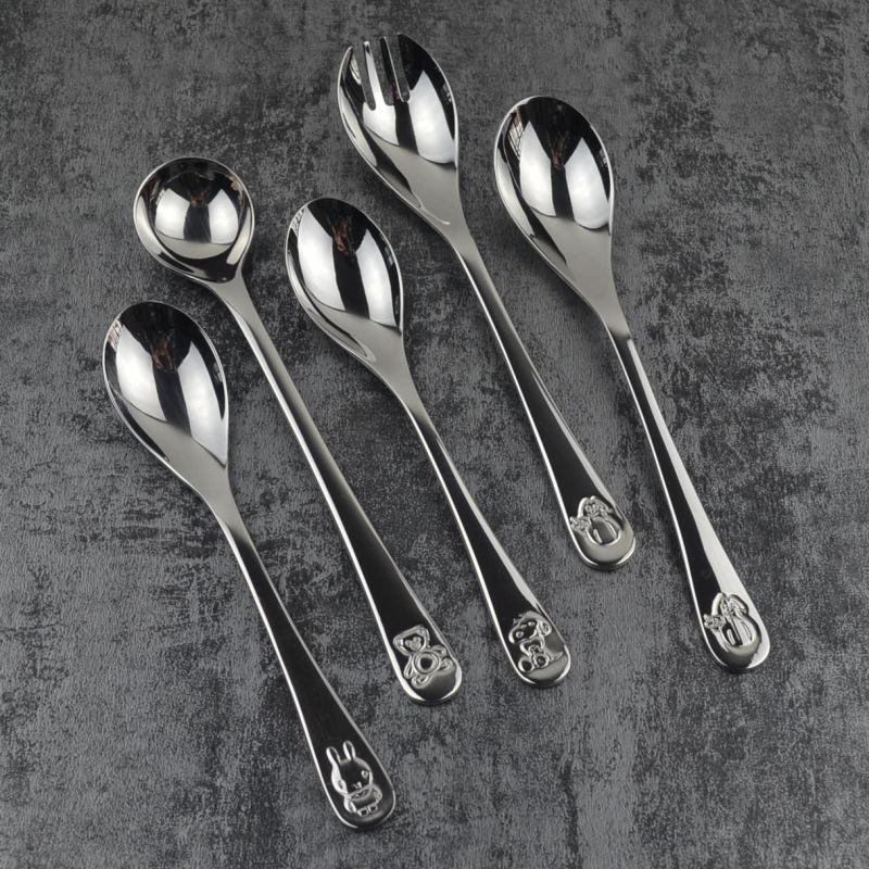 304 stainless steel children's eating spoon baby learn to eat training spoon cute cartoon baby food feeding spoon