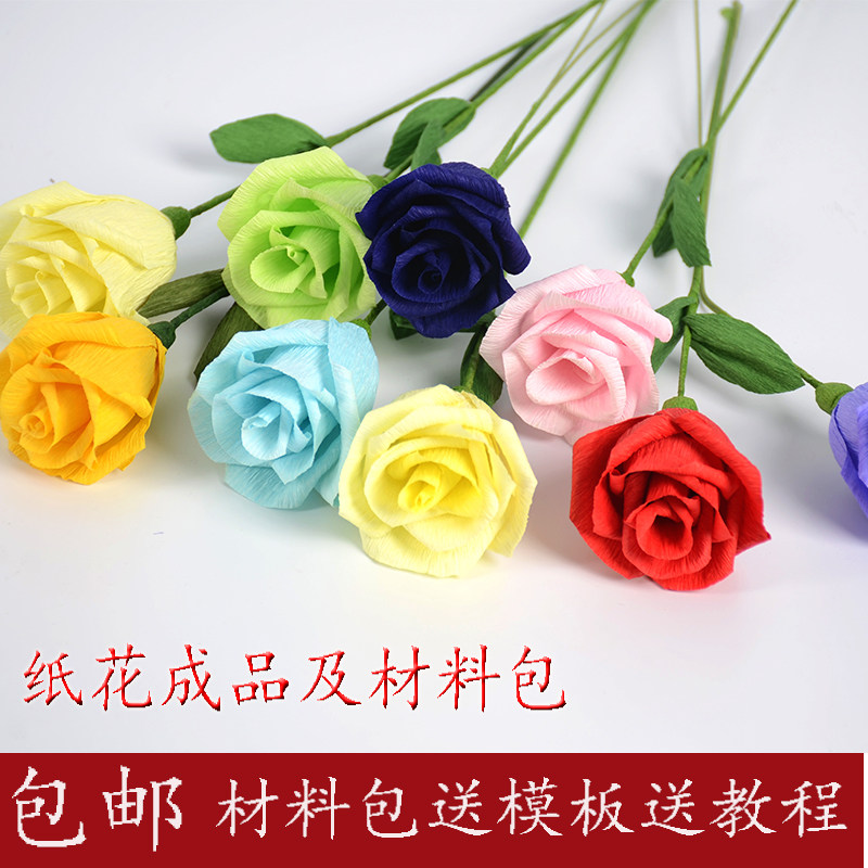 Wrinkle Paper Rose Finished Handmade Wrinkle Paper Rose Material Bag Handmade Diy Rose Students manual Job