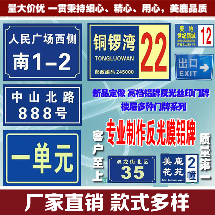 Aluminum Plate Reflective Door Plate Number Plate Street Home Home Doorplate Cell Digital Single-Floor Building Deck custom