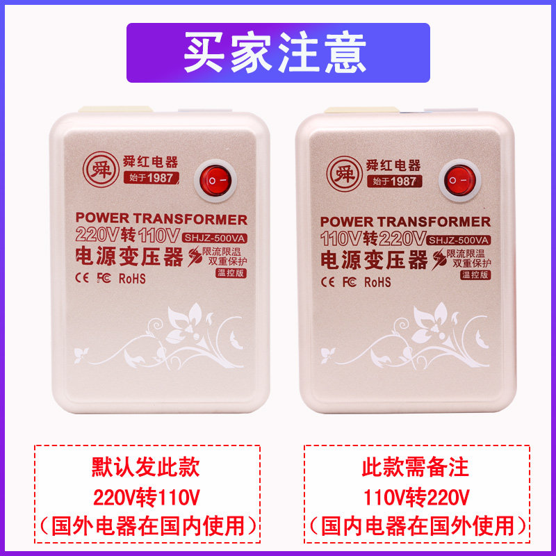 Shunhong 500w transformer 220v to 110v power supply voltage converter pure copper Japan and the United States imported electrical appliances