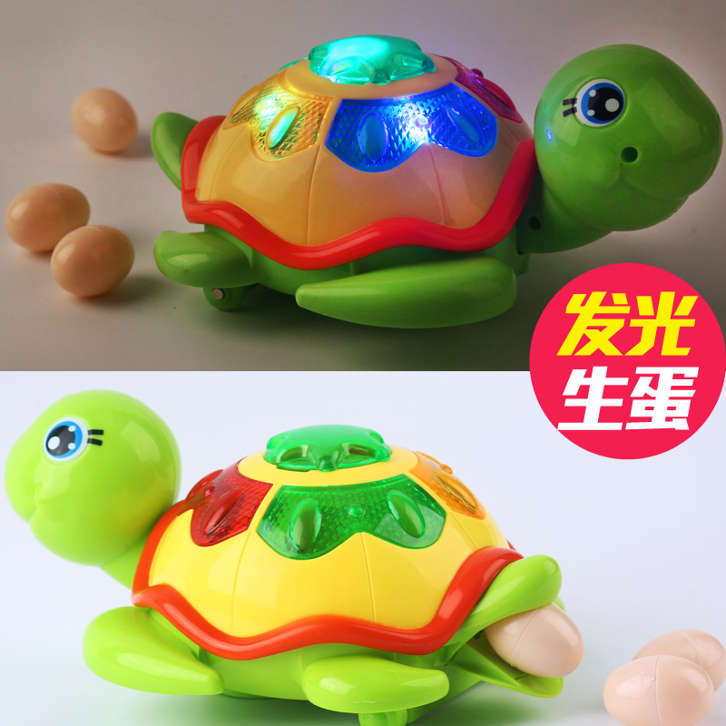 Jiarle egg-laying turtle dazzle color TV Moving egg-laying hen toy Light music Swan crawling toy