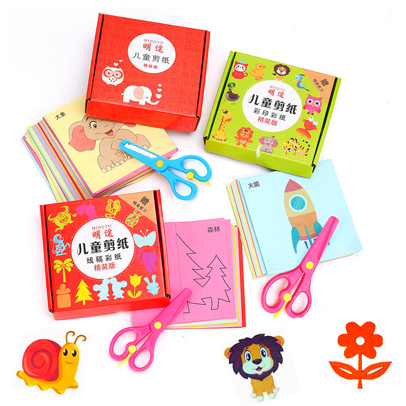 Children's handmade paper-cut book Daquan 3-6 years old kindergarten baby puzzle DIY production material toy scissors set