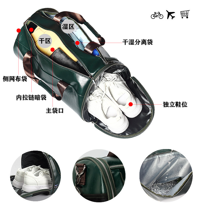 Fitness bag men's and women's sports training bag dry and wet separation travel luggage bag one shoulder hand carry-on diagonal cross cylinder basketball bag