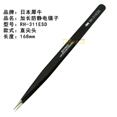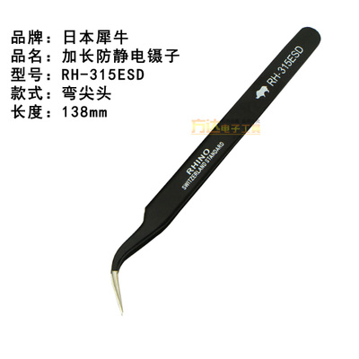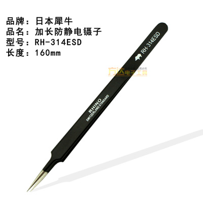 Rhino RH-315 black antistatic tweezer rhinoceros RH-314 black antistatic tweezers RH-311 black antistatic tweezers rhinoceros RH-314 polished silver tweezers rhinoceros R