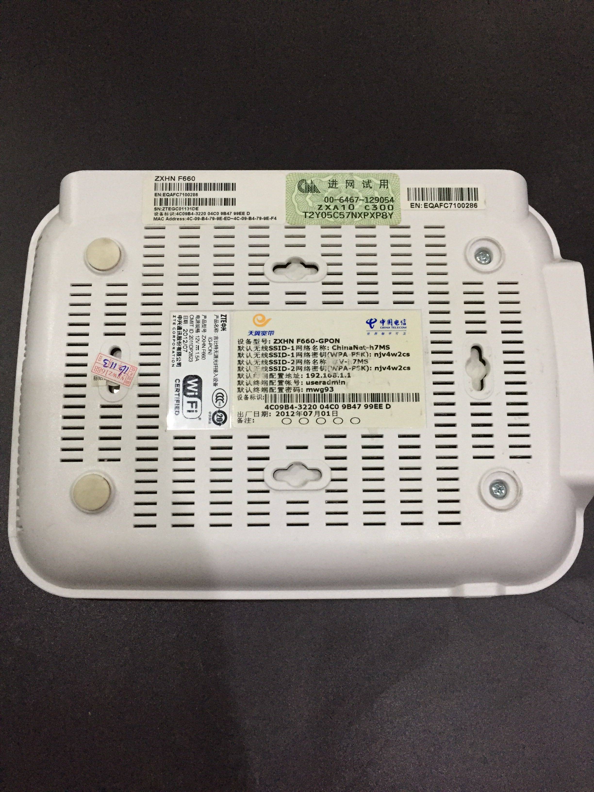 Pack ZTE F660Gpon Telecom Broadband Gigabit Fiber Cat WIFI Guangdong Guangxi Jiangxi Yunnan Jiangsu