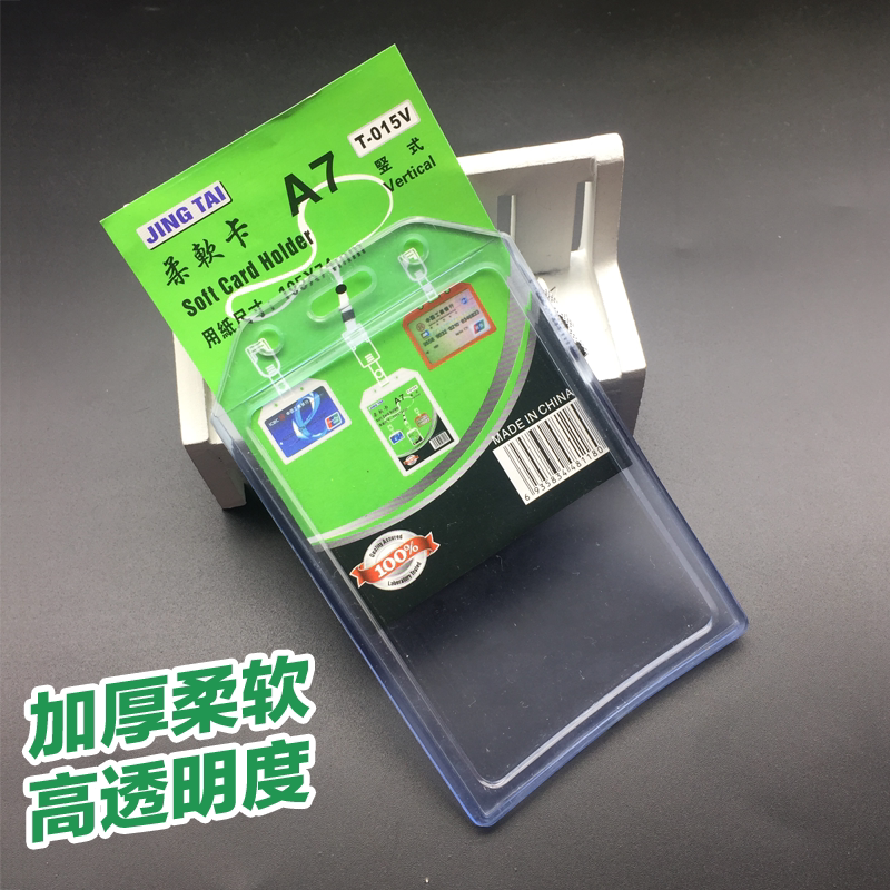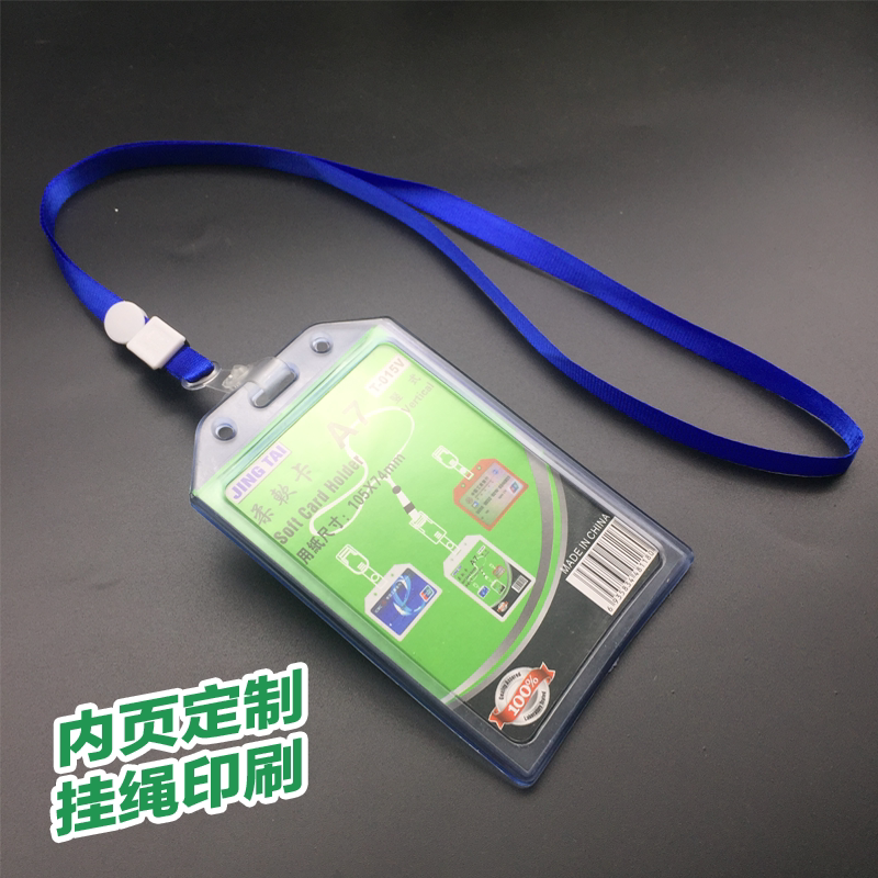Thickened high-grade transparent soft badge ID card cover ID work card badge cover Hanging rope