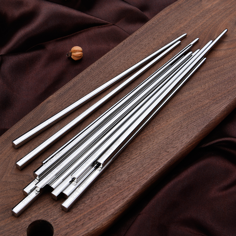 INOX18 10 stainless steel chopsticks 304 thickened hollow anti-burn square chopsticks One pair 5 Double 10 Double