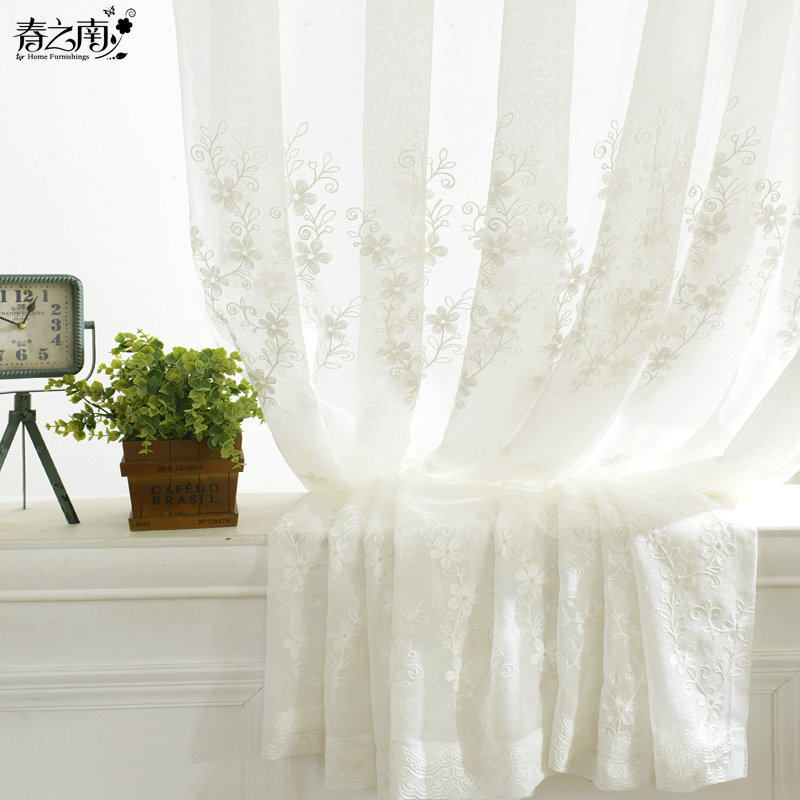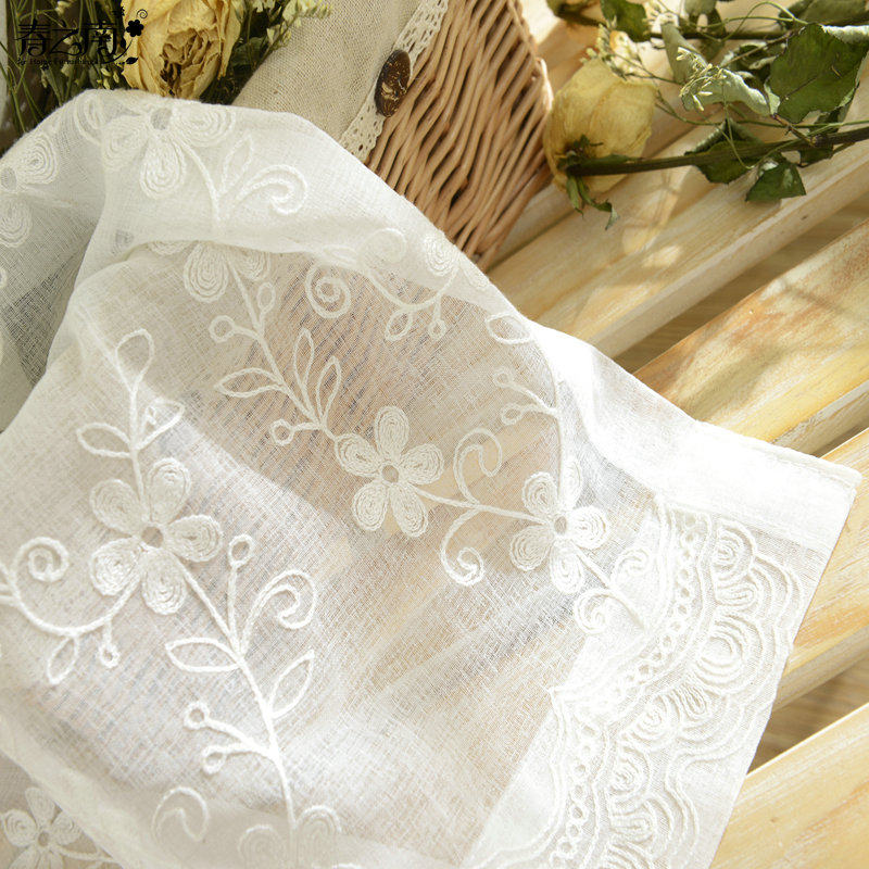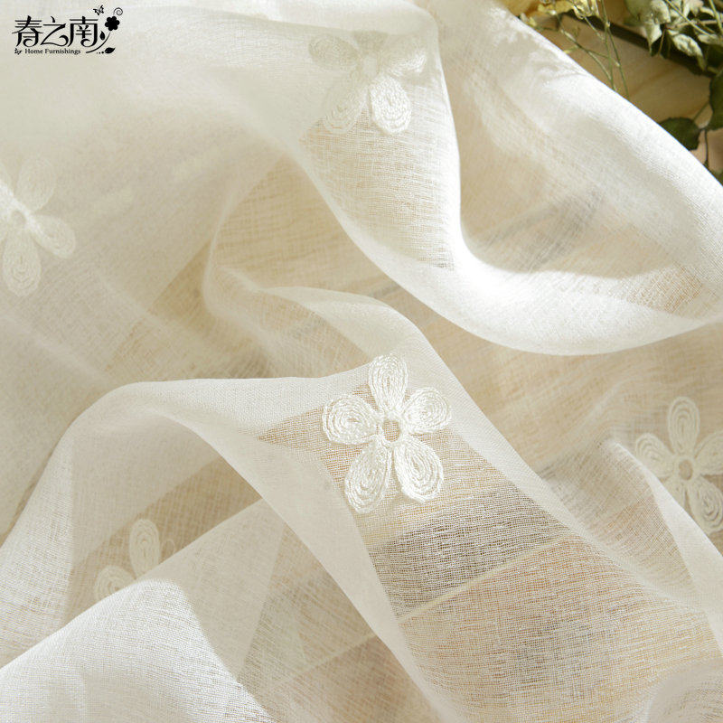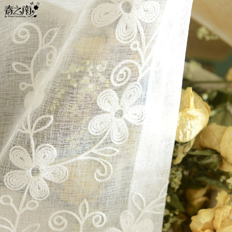 Modern simple cotton and linen style embroidered window screen white gauze curtain living room bedroom balcony gauze curtain garden finished custom curtains