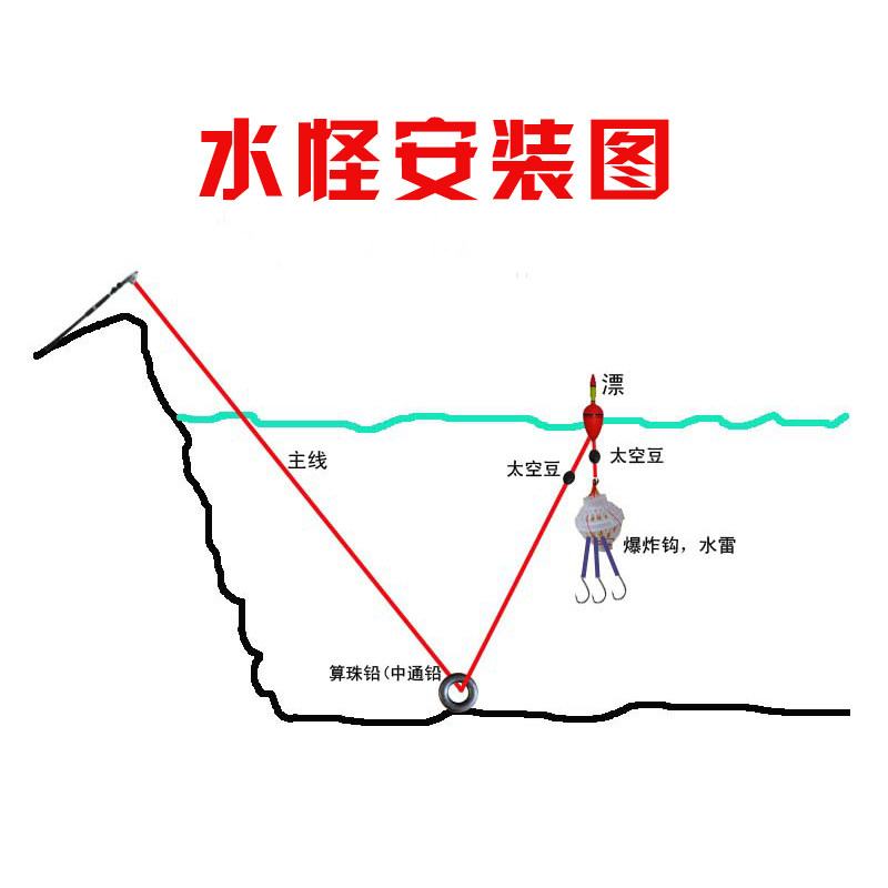 Throwing pole sea pole fishing explosive hook water monster bait cage set big head fat head silver carp bighead carp bait fishhook fishing group floating ball