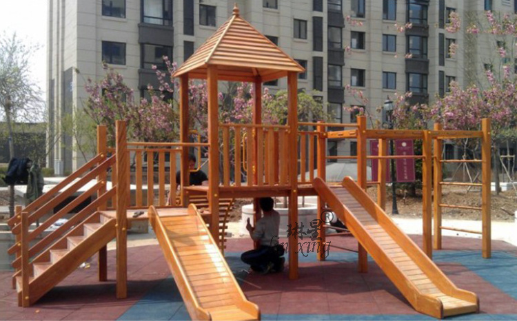 Community outdoor large wooden slide kindergarten children's wooden little doctor slide combination climbing network game play facilities