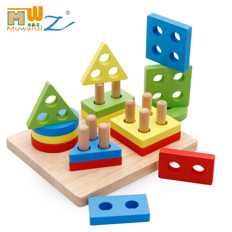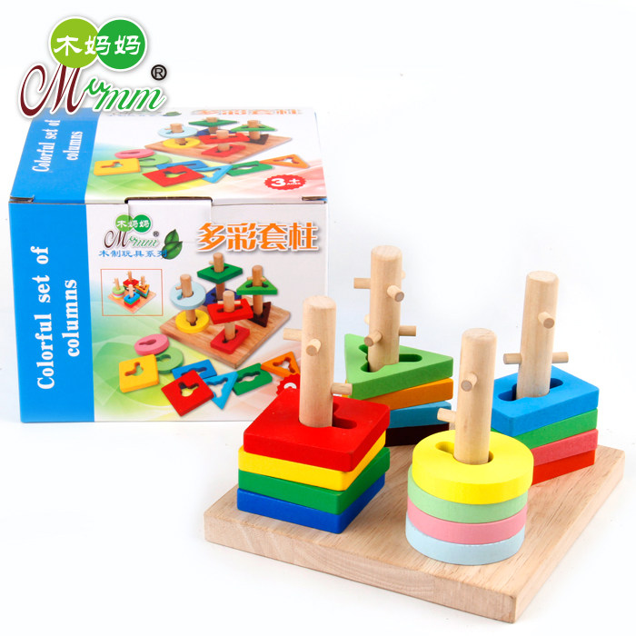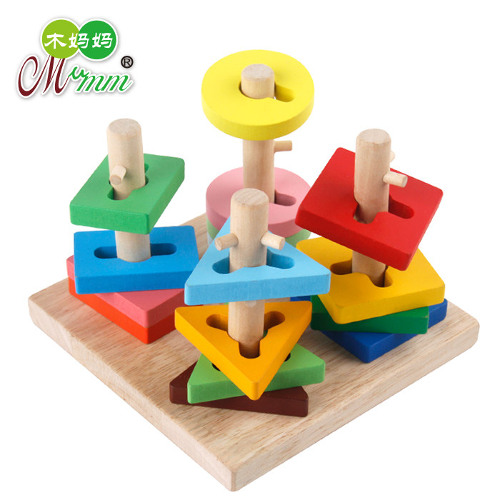 Infants and children boys and girls baby wooden educational three-dimensional puzzle geometric building blocks set of pillar toys 1-2-3-4 years old