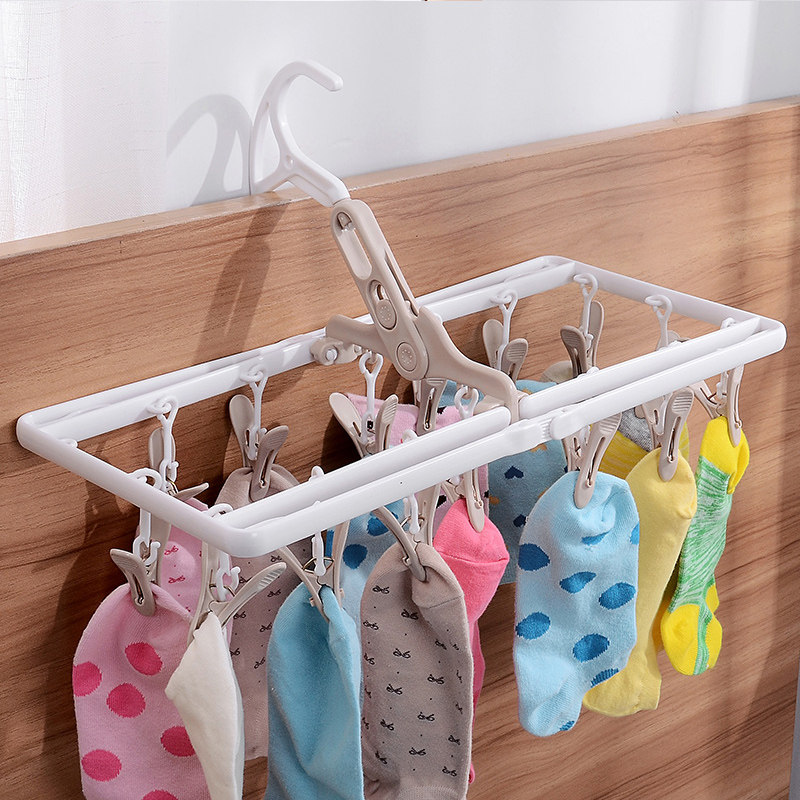 16-clip foldable multi-head adult clothes rack Plastic multi-clip children's sock rack Clip hanger hanger