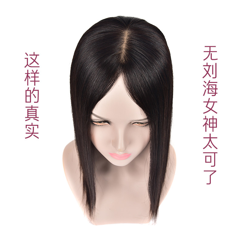 True hair top summer season mid-air bangs head reissue female wig piece delivery needle no trace cover white hair