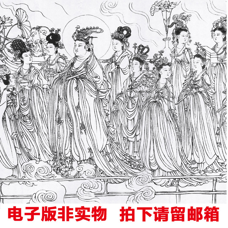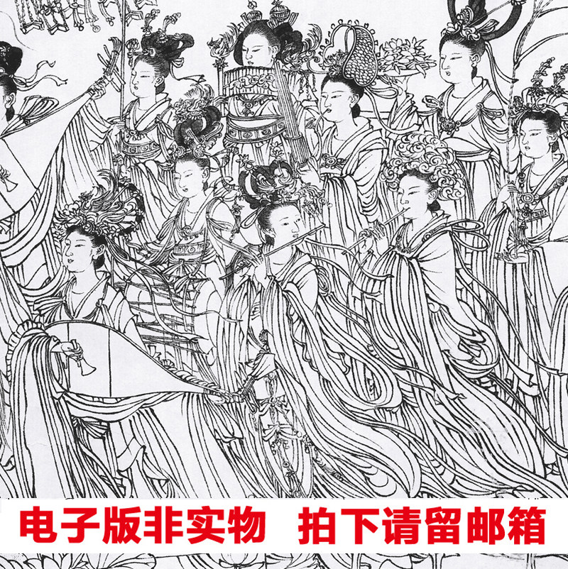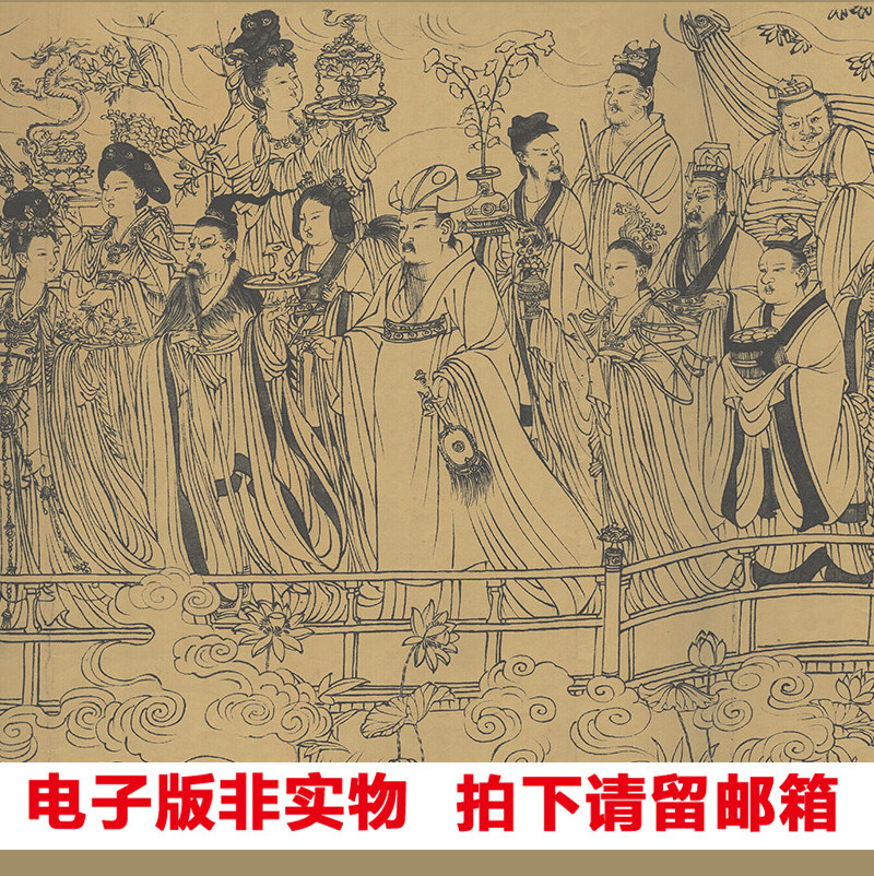 Tang Chinese painting eighty-seven immortals volume white sketch (biography of Wu Daozi)High-definition electronic version of the large picture can be copied micro-spray