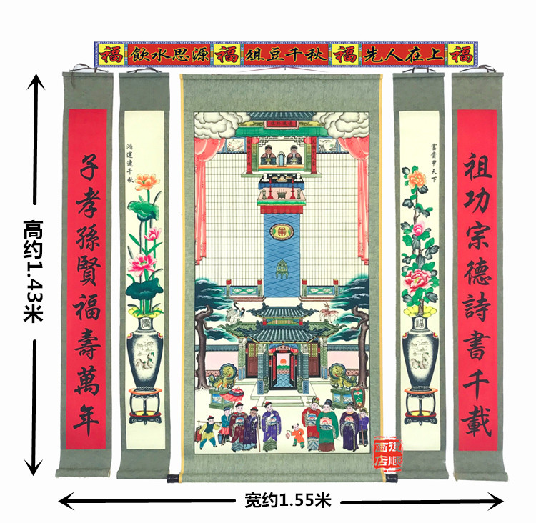 Home Hall Axis Hand-painted Family Genealogy Genealogy Ancestors of the Ancestral Old Scrolls Vases Living Room Boutique Countryside