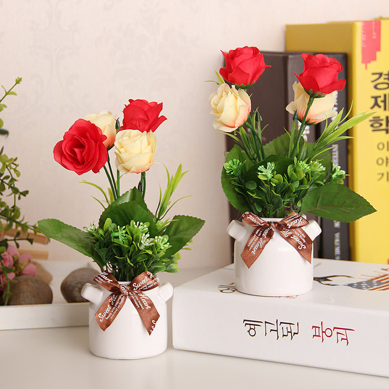 Home Decoration Pendulum Pieces Office Creative Pendulum Pieces Valentine's Day Gifts Rose Flowers Emulation Potted Fake Flowers Ornaments
