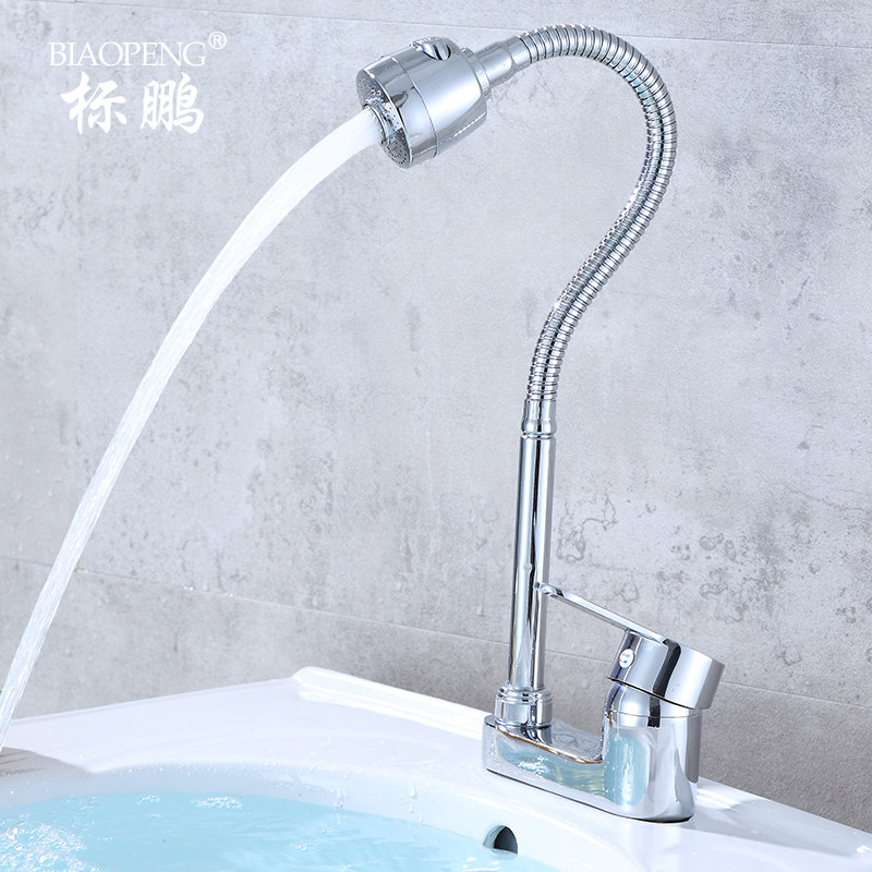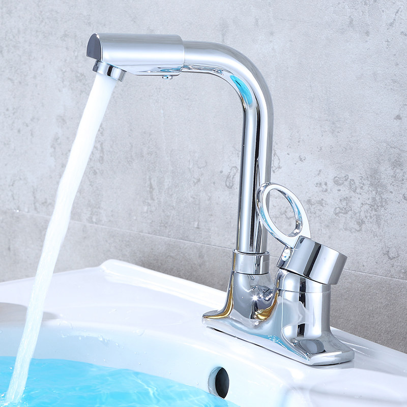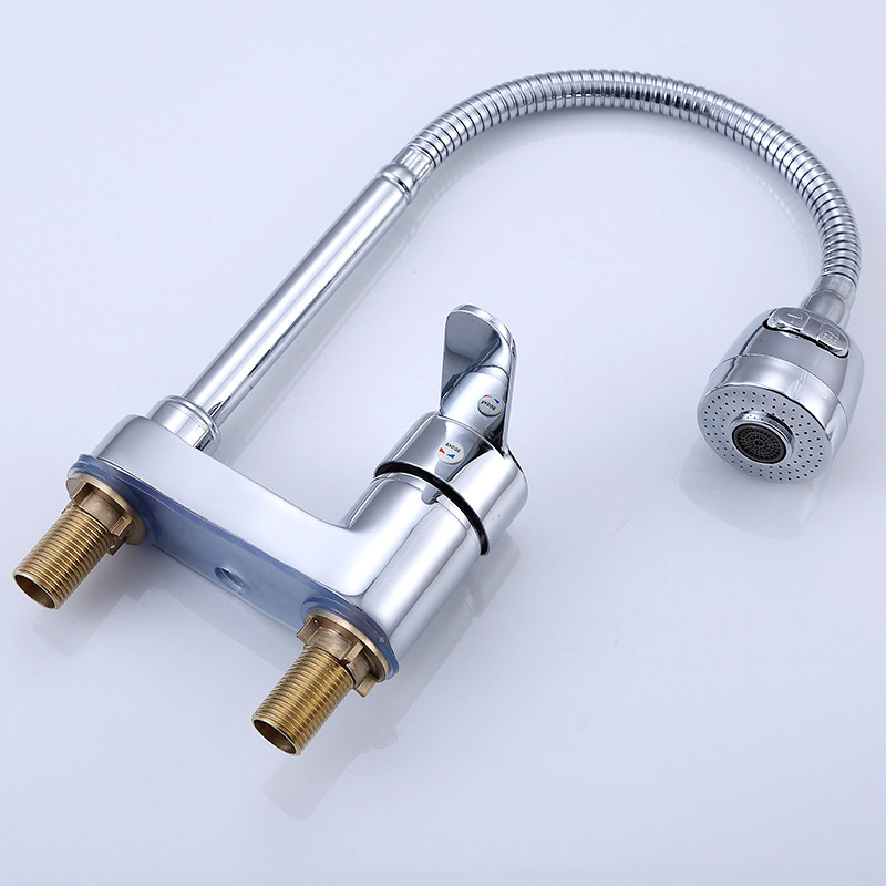 All-copper universal tube rotating hot and cold single cold double outlet basin faucet two-way three-hole washbasin faucet