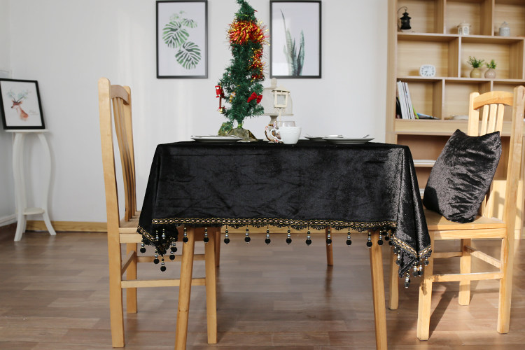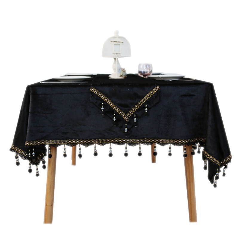 Neoclassical European-style black velvet fabric modern minimalist table bussy table cloth tea table cover cloth-like room decoration