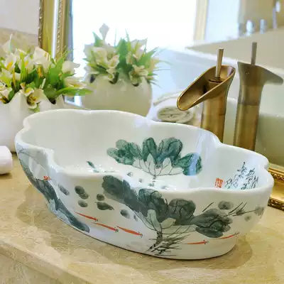 Hand-painted ceramic wash basin Jingdezhen art washbasin cosmetic room platform basin large size balcony basin household