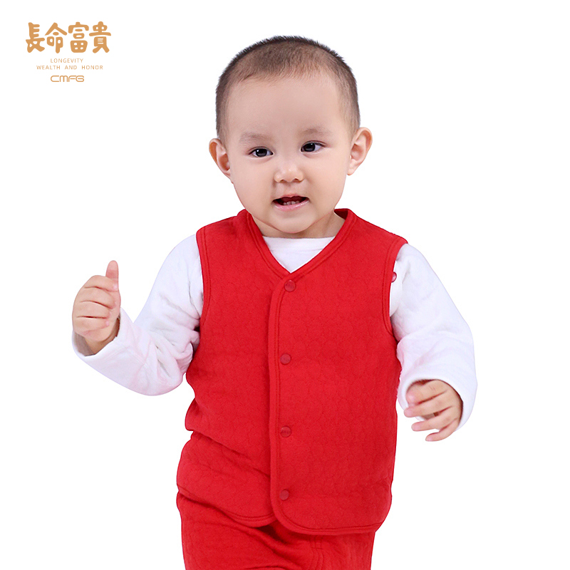 Long life rich and expensive baby waistcoat spring autumn male and female baby clothes pure cotton open flap jacket clip cotton warm waistcoat red