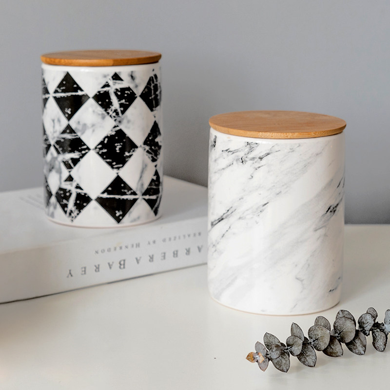 Nordic Ceramic Storage Tank Seals Jars Candy Snacks WOOD LID MARBLE TEXTUATE RESIDENCE DECORATIVE FURNISHINGS THE FURNISHINGS