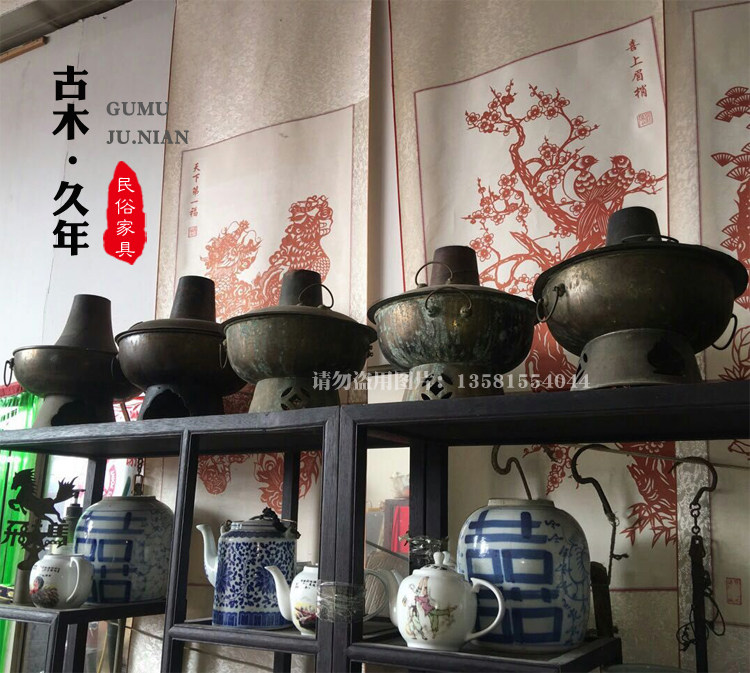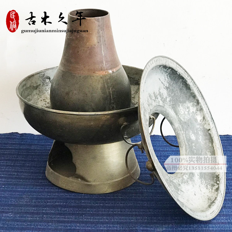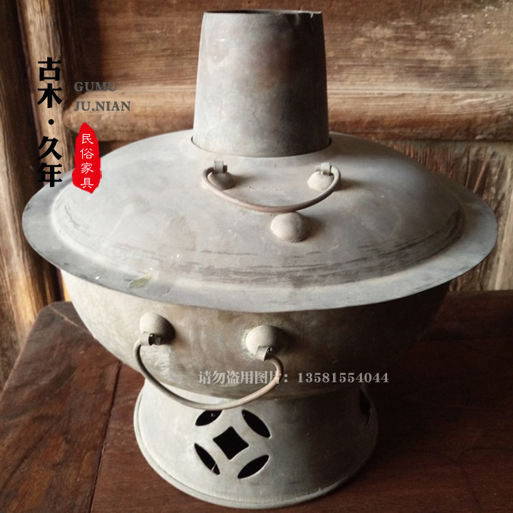 Old Copper Hotpot Antique Pure Copper Old Objects Old Charcoal Hotpot Folk Miscellaneous Farmhouse Decoration Props Hem