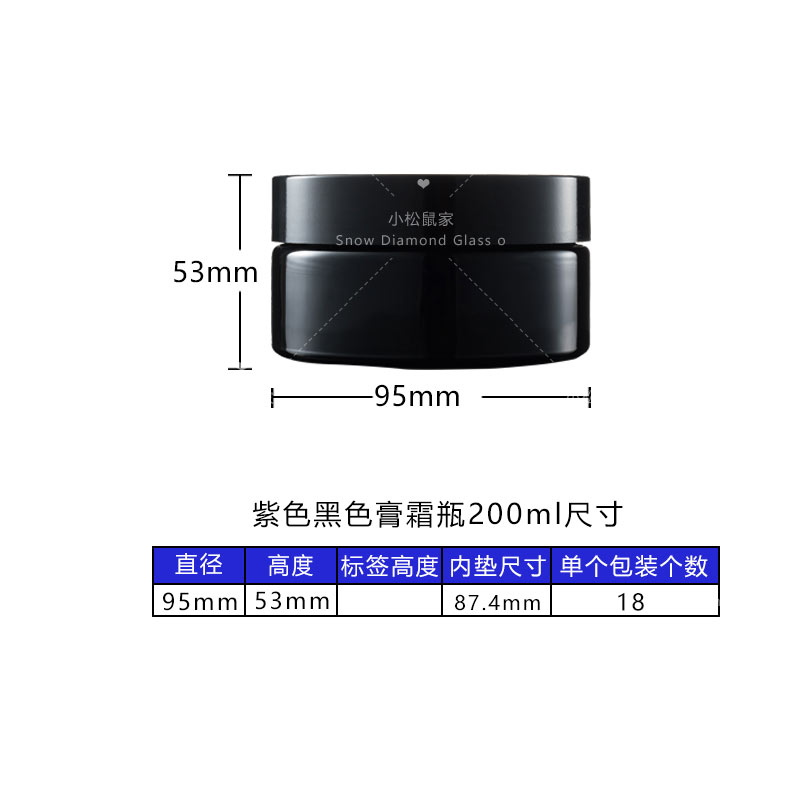 Imported optical glass purple black cream bottle face cream 200ml gram cosmetic travel package wide mouth set