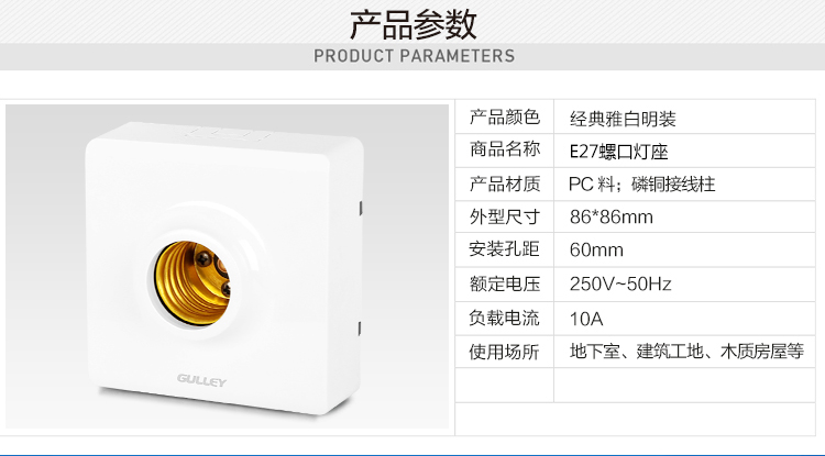International electrician 86 Type of screw lamp holder pendant lamp holder flat lamp holder flat lamp holder screw mouth big thread E27 model