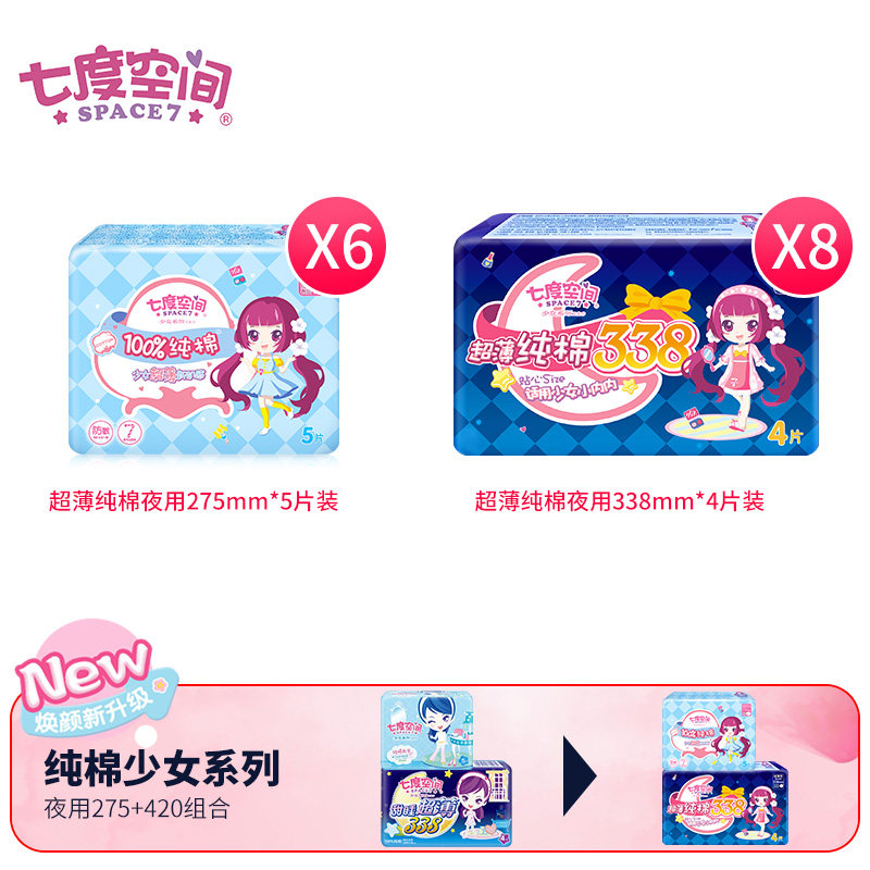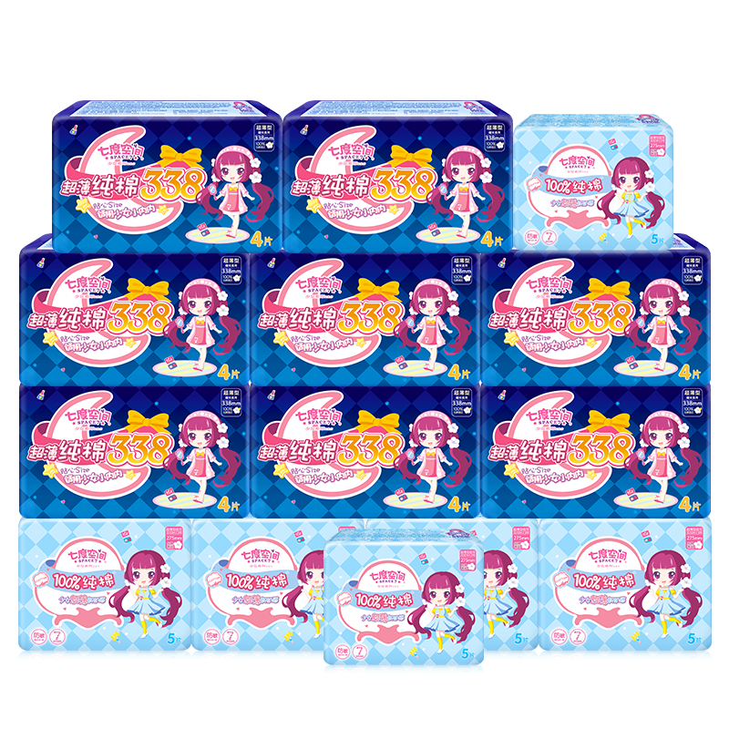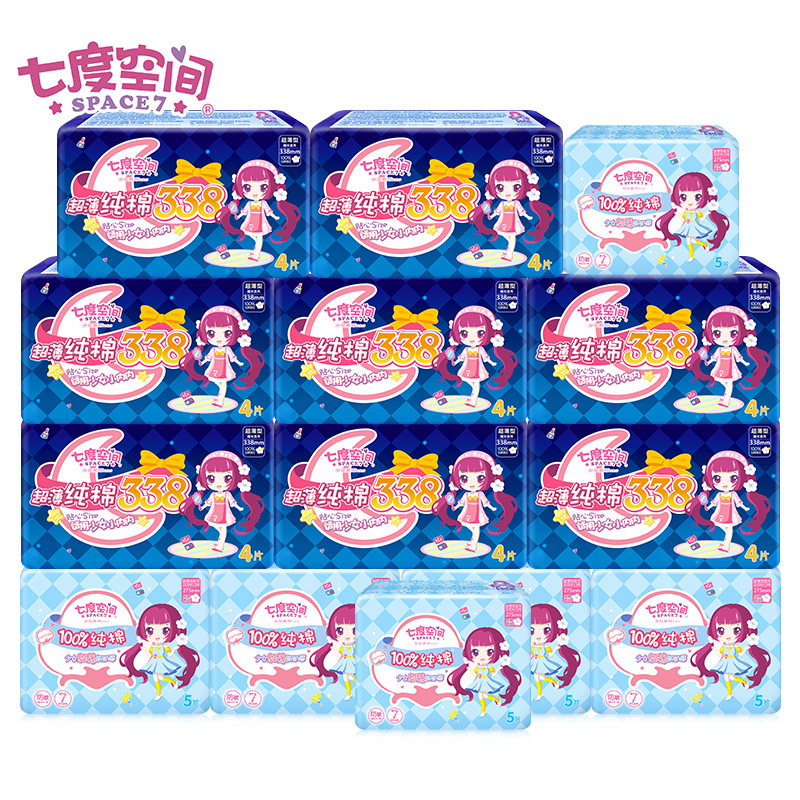 Seven-degree space sanitary napkin night use combined full box wholesale girls pure cotton soft ultra-thin ultra-long aunt towel mixed pack