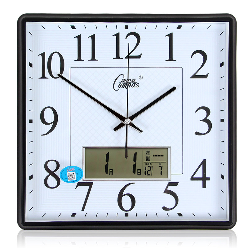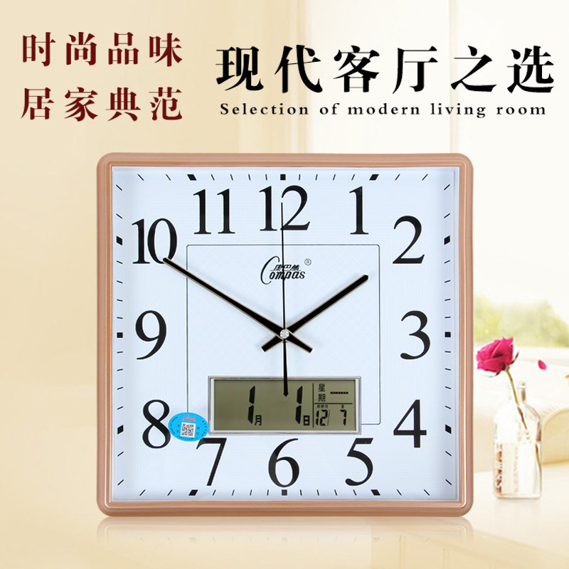 Cambar wall-mounted bell mute watch brief square sitting room clock bedroom home calendar bell 14-inch quartz clock