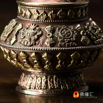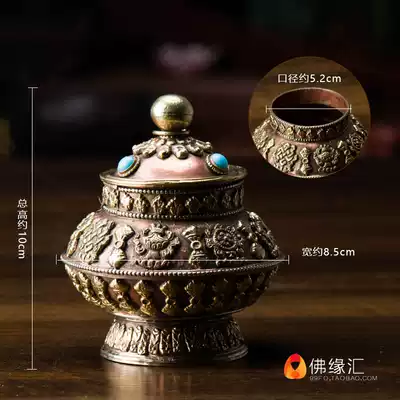 (Buddhism) Tibetan Buddhism Nepal handmade copper carved rice box small size 10cm high