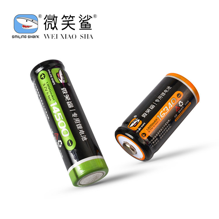 Smile shark flashlight headlamp lithium battery rechargeable battery 14500 16340 small lithium battery high capacity