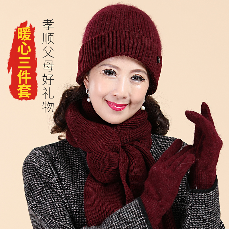 Middle and elderly hat children grandma old lady old lady autumn winter mom mother-in-law winter plus suede thickened wool-wire cap scarf