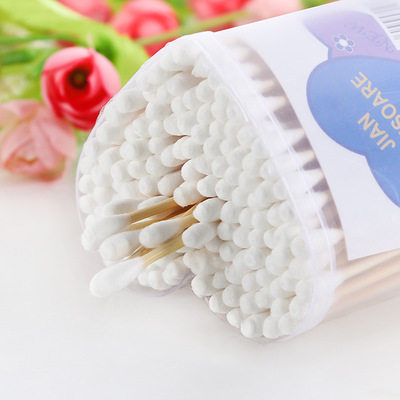 (150 cylinder mounted) cleaning beauty tools double-head wood stick cylinder cotton stick natural birch sanitary cotton stick