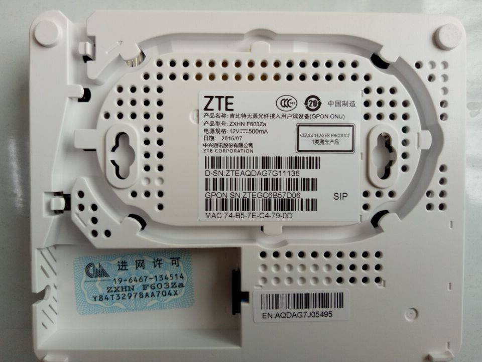 New mobile gigabit ZTE ZXHN F603 F663 F612 Optical Cat Gpon Fiber Cat Mobile standard No standard