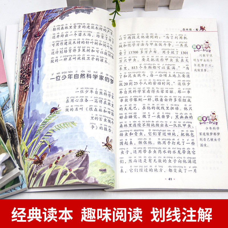 Full Four Books Genuine Forest Newspaper Spring Summer Autumn Winter Colorful patterns Note edition Children's Pink Story 1st grade Primary school children's extracurbical reading books sophomores must read three-45 8-10-12-15-year-old children's extracurbres