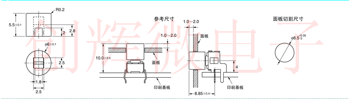 A100 button cap with light touch switch series 6 * 6 * 7 3DIP straight insert square handle SMD sticker five-to-switch