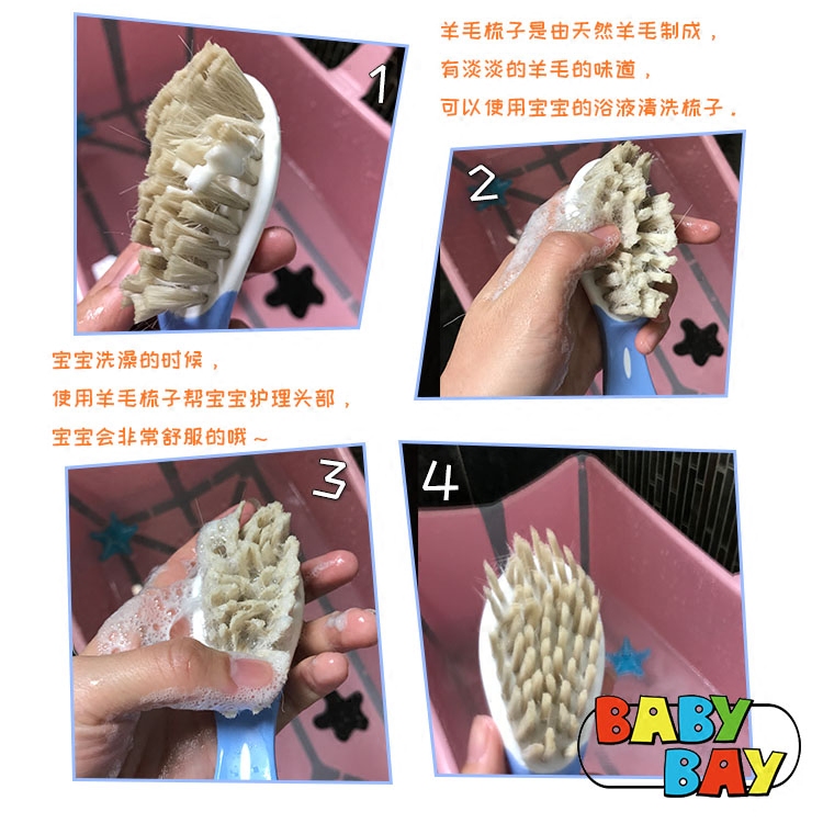 German NUK newborn wool comb soothing massage scalp soft hair head brush to remove placenta damp and dry
