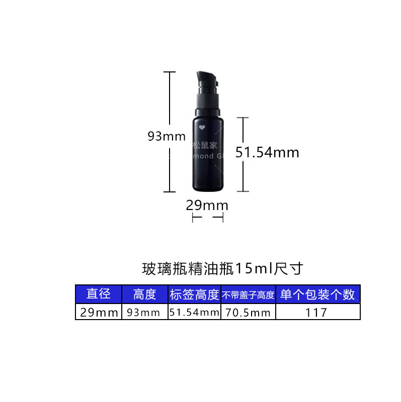 Imported black purple glass bottle essential oil bottle 15ml cosmetics avoid light packaging travel press pump lotion set