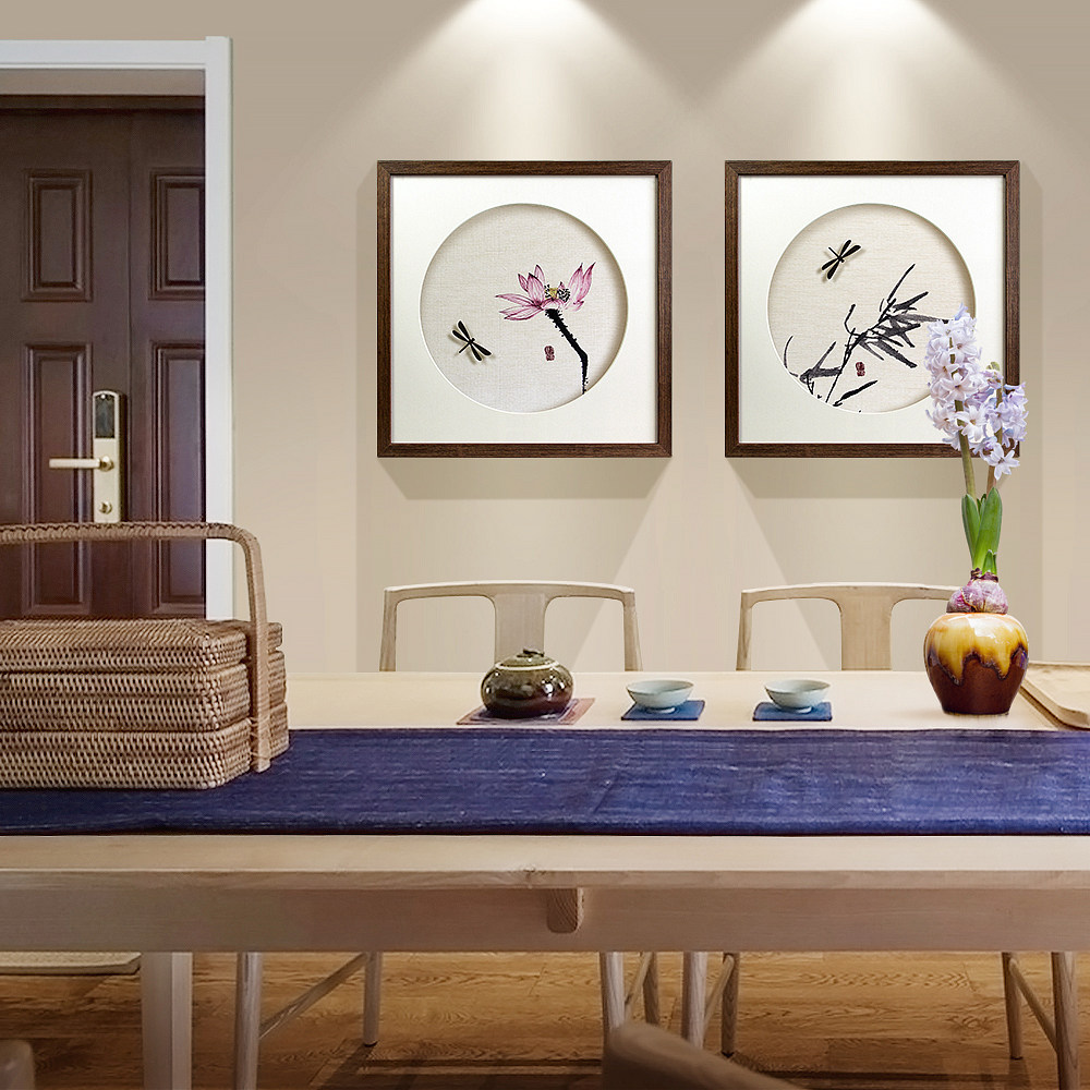Electric meter box decoration painting free of punching and hanging painting sheltering home empty open box Xuanguan dining room solid wood New Chinese kind of physical painting