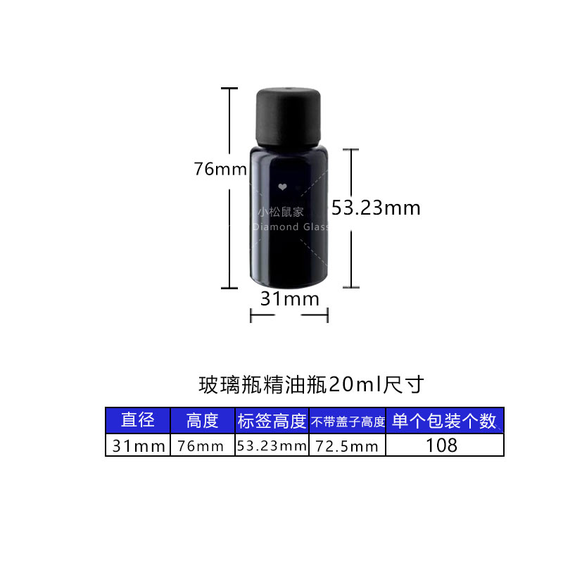 Blue-purple glass bottle essential oil bottle 20ml sub-packed travel dark-proof blending bottle empty bottle smooth cover