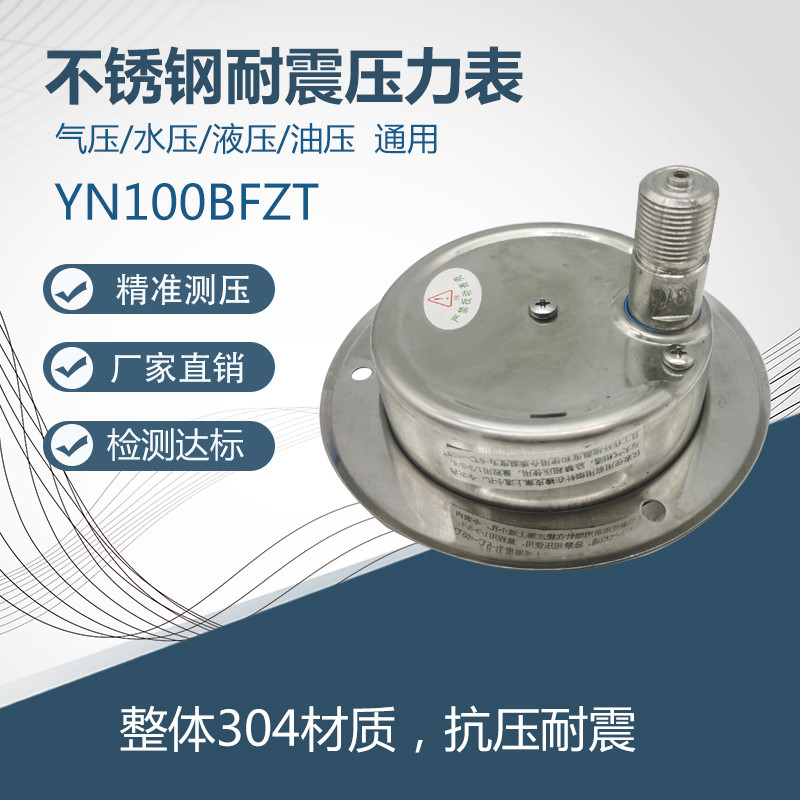 304 Axial edge all stainless steel shock pressure gauge Steam gauge Water pressure gauge Pneumatic hydraulic YNBF100ZT