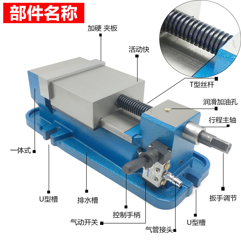 High precision 6 inch pneumatic vise Fast fixture Milling machine Angle solid bench pliers Quick action pneumatic flat mouth pliers CNC heavy duty