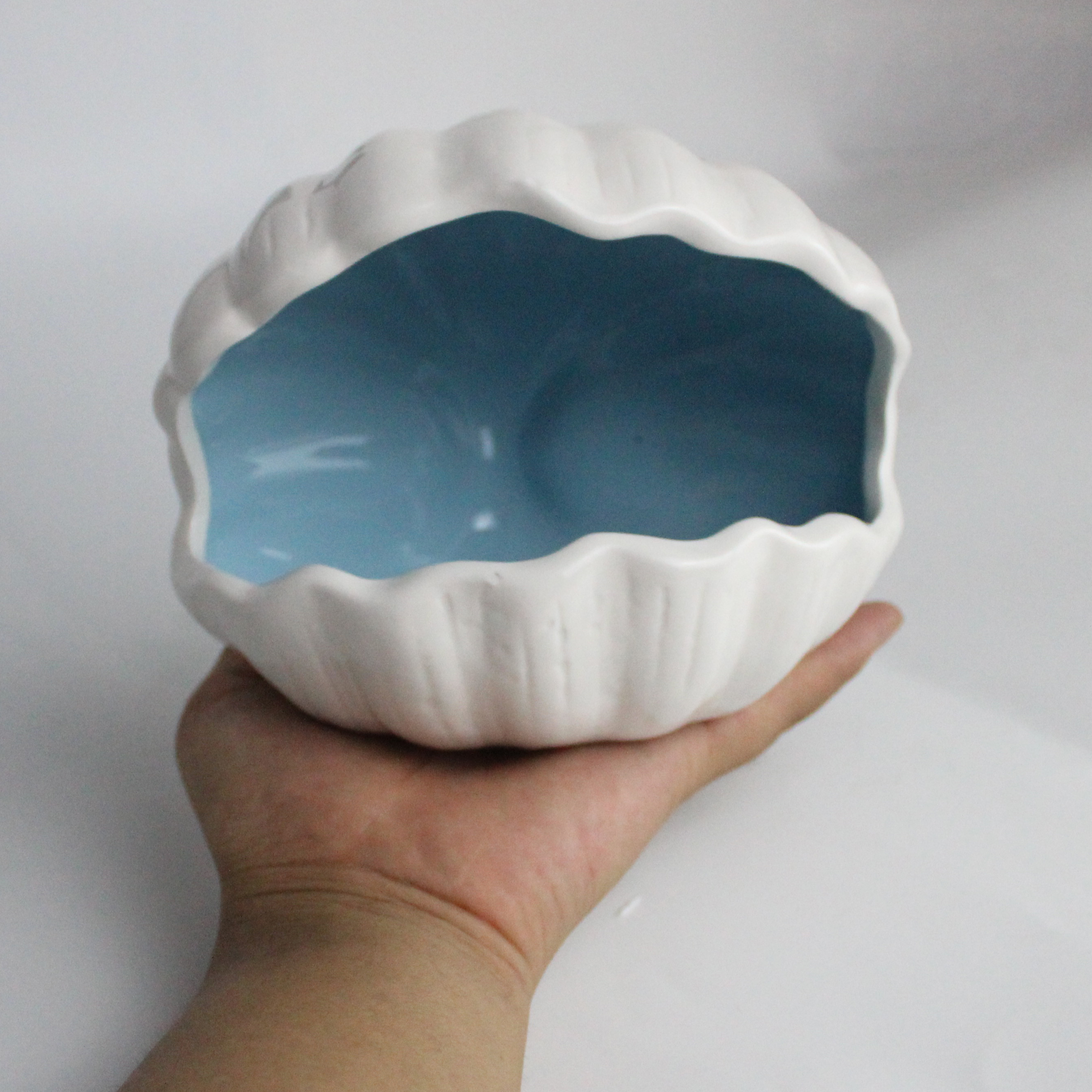All ceramics have slightly flawed small shell socket powder 13*10cm cm shell blue 13*10cm star powder diameter 11cm height 3 5cm star star pot blue diameter