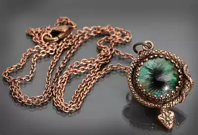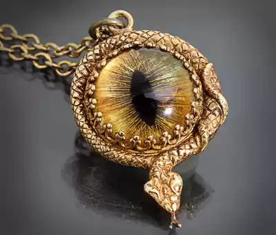 Snake ㊣ American hand made special Gothic steampunk longan inlaid Snake winding brass necklace