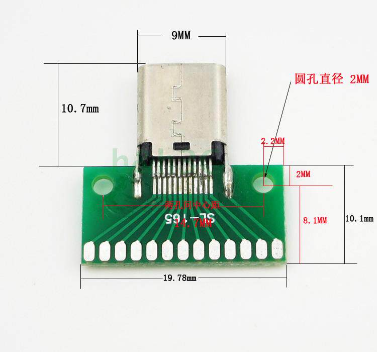 Direct positive and negative plug TYPE-C male test board USB 3 1 with PCB board 24P test female connector